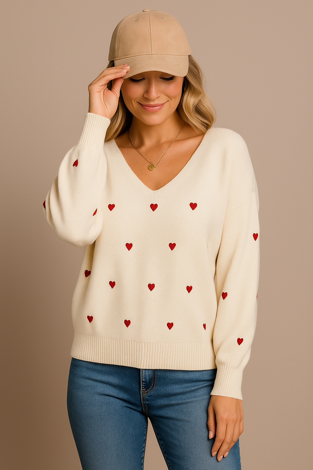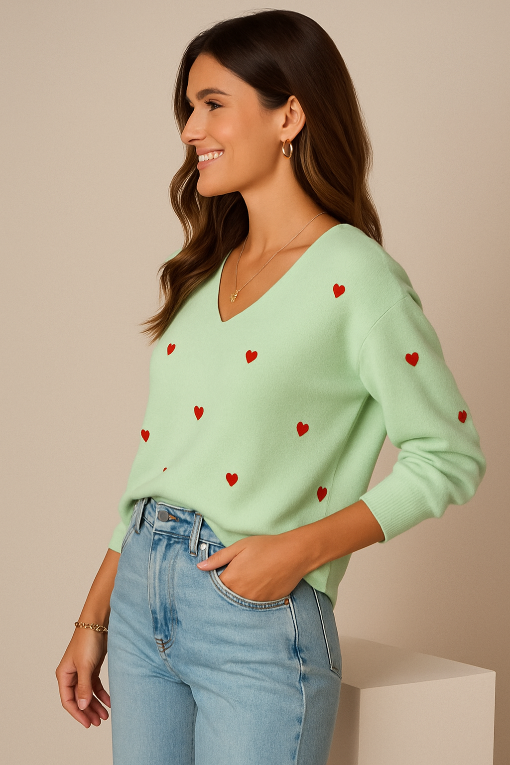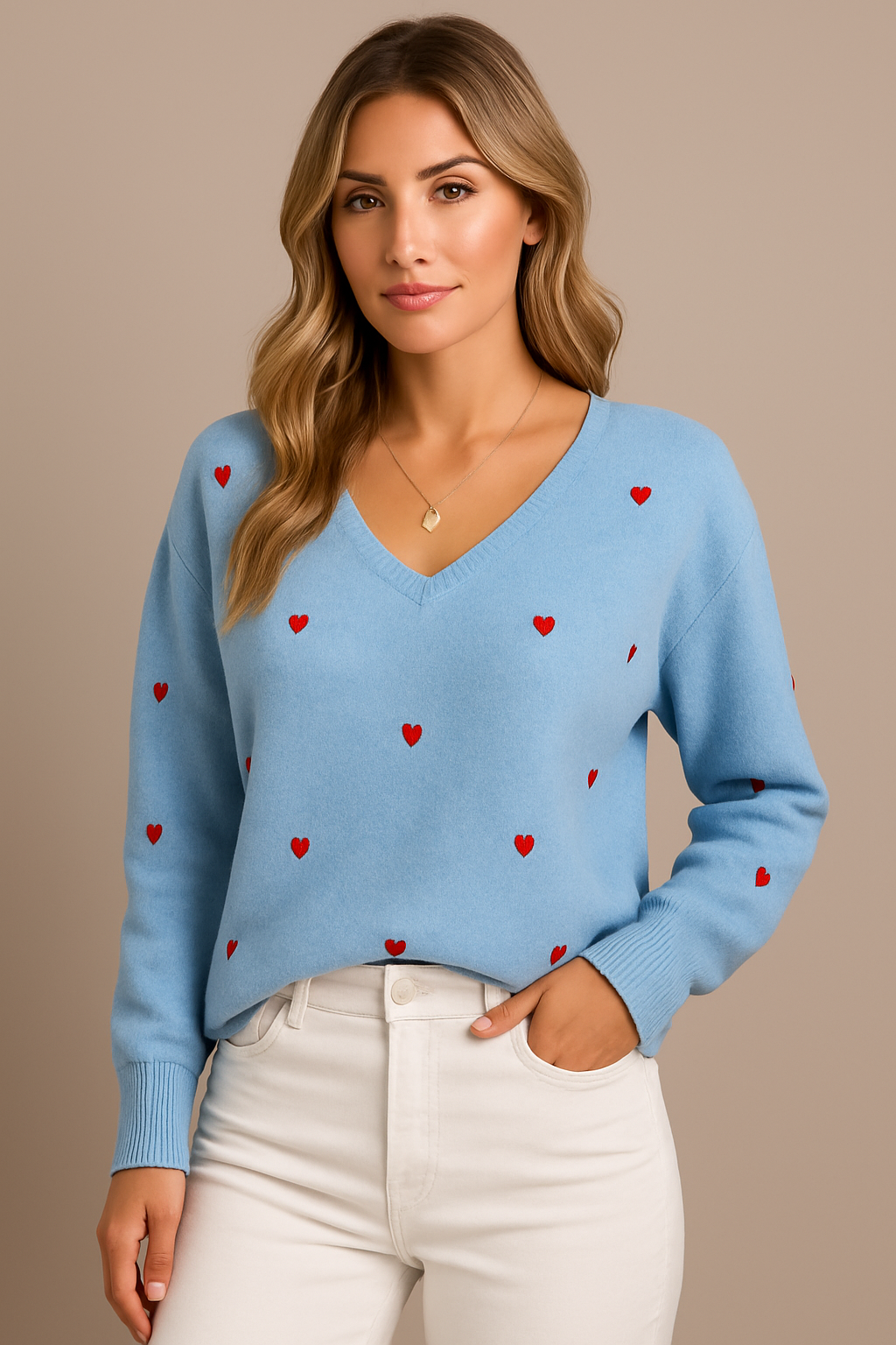 This is our Heart Pattern Knit V-Neck Sweater