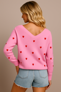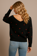 Heart Pattern Knit V-Neck Sweater