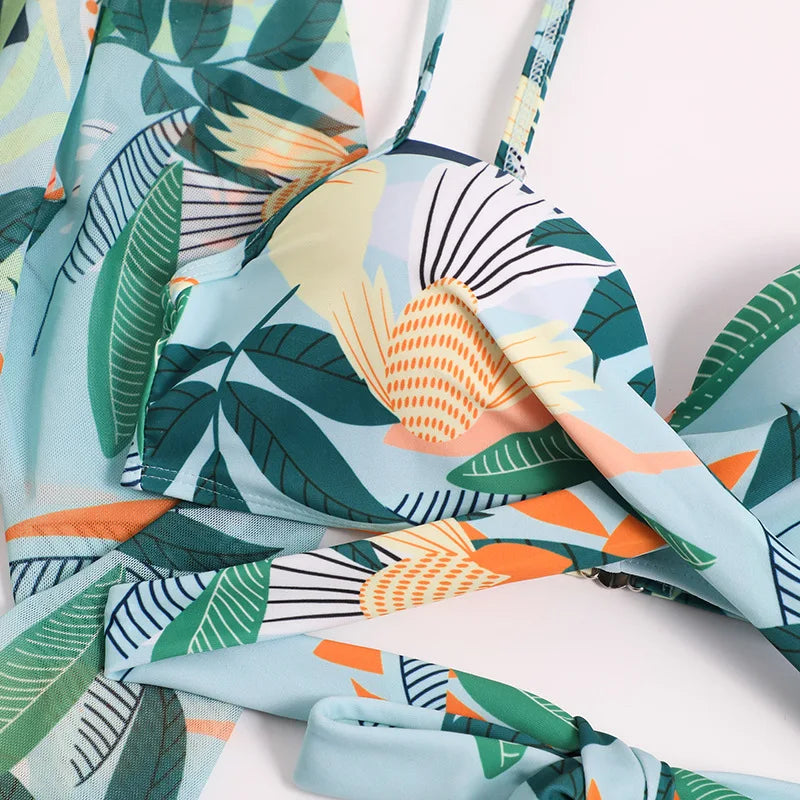 - Matching Top and Cover-Up: The bikini top and cover-up both feature a matching print, creating a coordinated and stylish look.