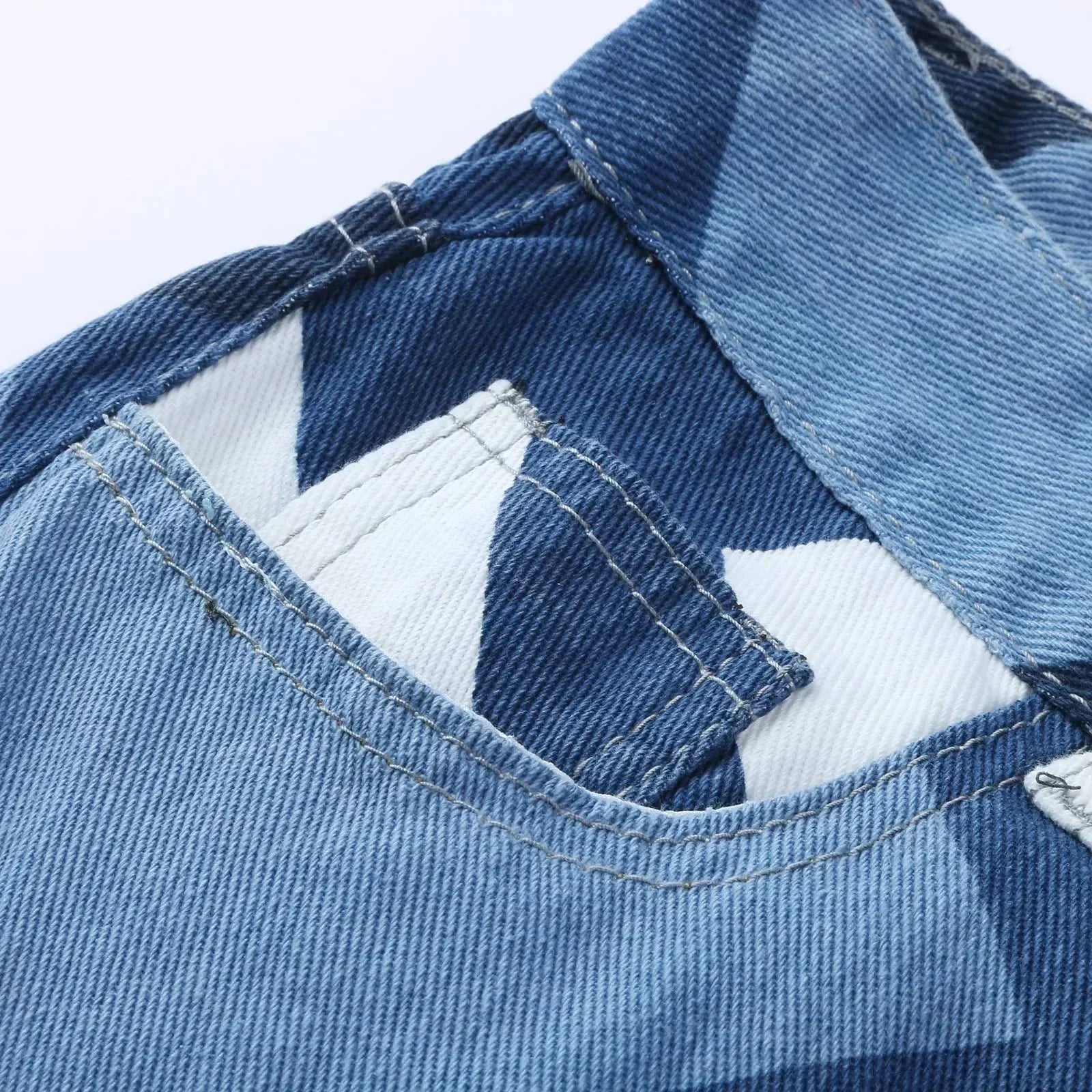 All-over checkered print adds a graphic edge to your denim rotation