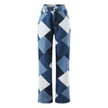 High Waist Checkered Denim Jeans