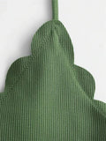 - Scallop Top: The swimsuit top features a scallop design that adds a feminine and elegant touch to the swimsuit.