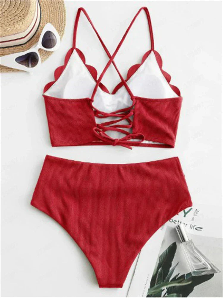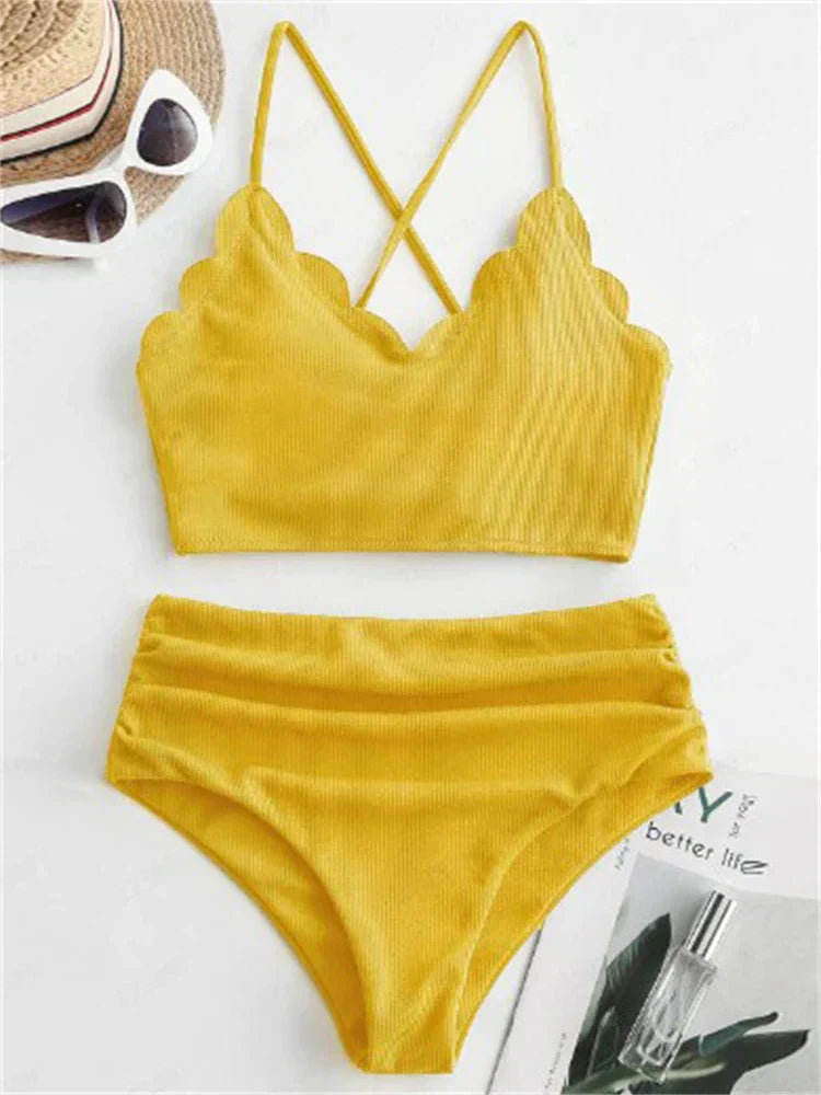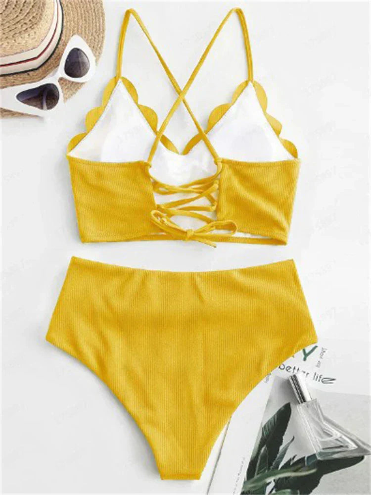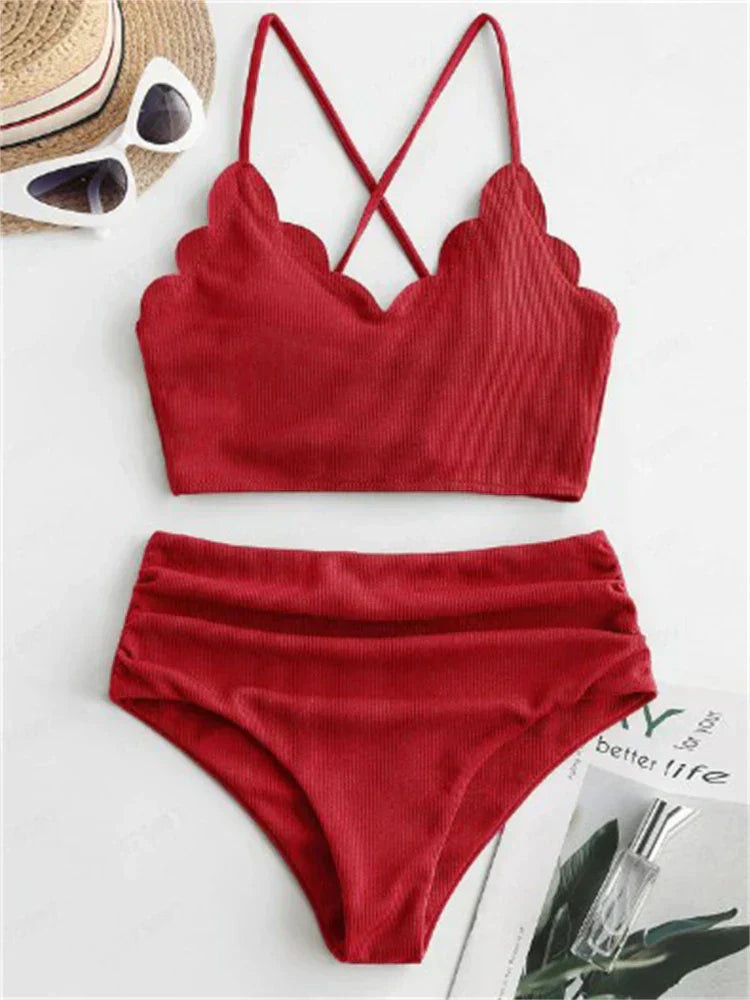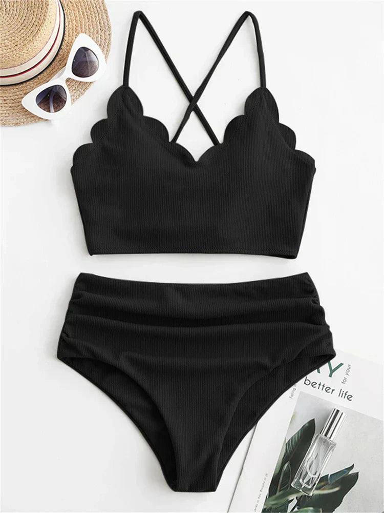 This is our High Waist Scallop Top 2 Piece Swimsuit