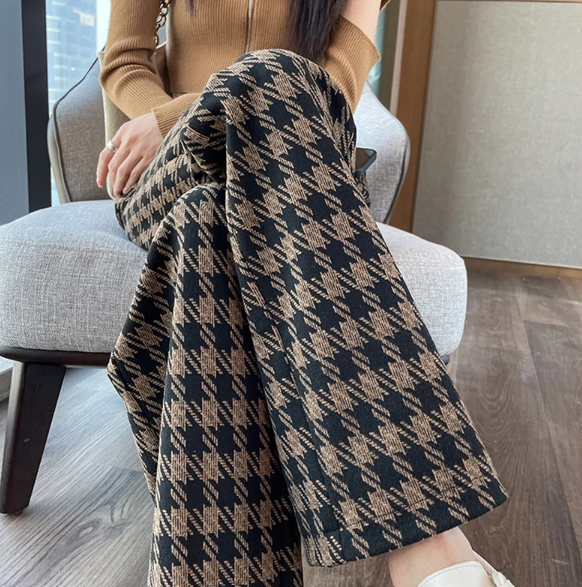 This is our High Waist Straight Leg Plaid Trousers