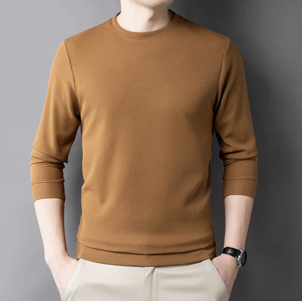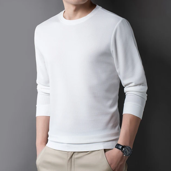 Waffle-Knit Texture: The Ian Waffle Basic Long Sleeve features a distinctive waffle-knit texture that adds depth and dimension to the fabric. This subtle yet sophisticated detail sets it apart, making it a versatile piece for both casual and semi-formal occasions.