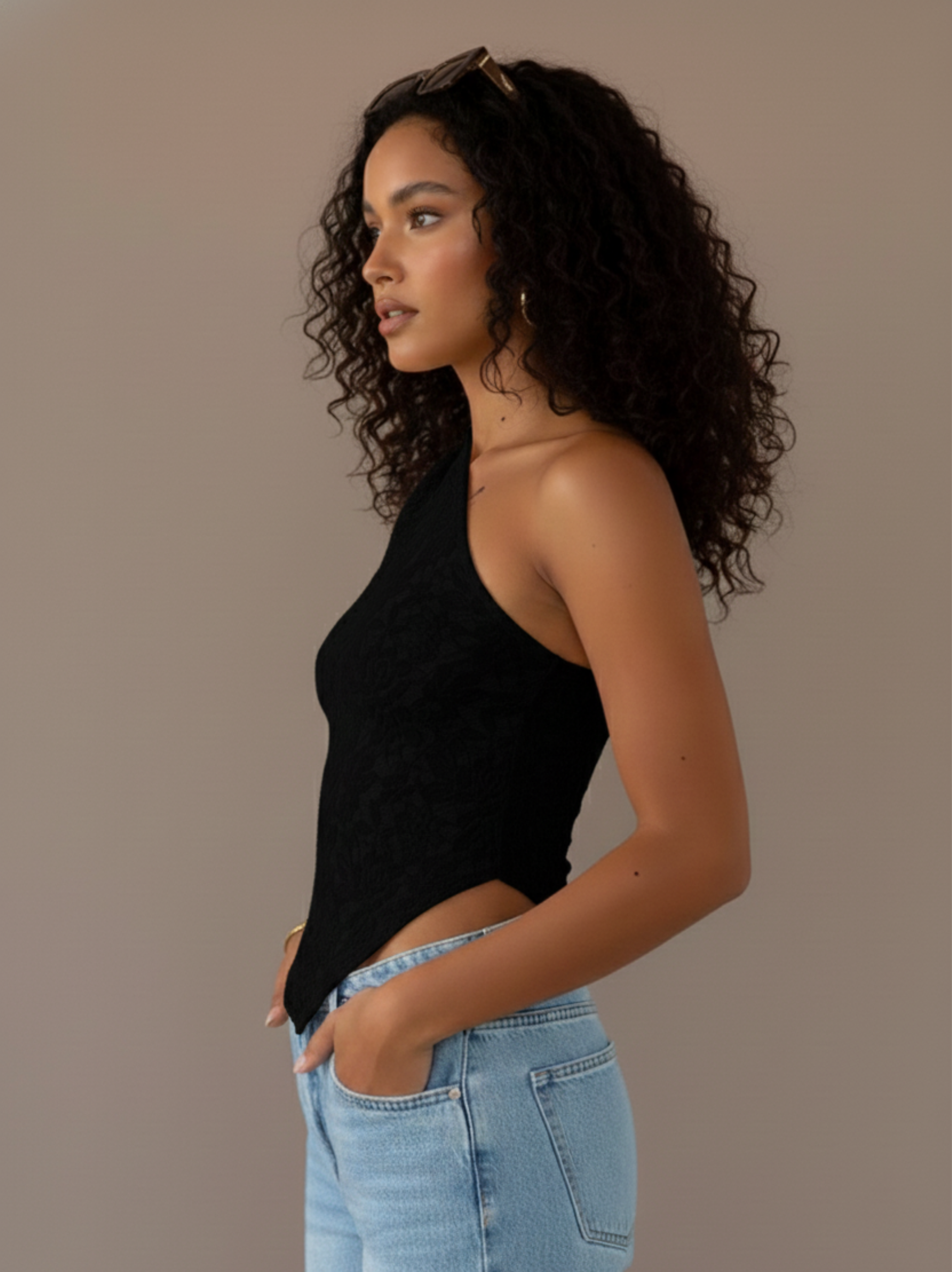 Step into chic summer style with the Jasmin Lace Summer Tie-Up Top, a blend of elegance and modern design. This top, crafted from a premium polyester and spandex blend with delicate lace, offers a flattering silhouette perfect for sunny days or an evening out.