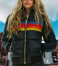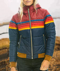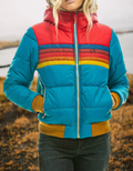 The Jazzie Puffer Hooded Jacket is your go-to piece for combining vintage vibes with modern comfort. Designed with a bold multicolor stripe pattern across the chest, this jacket brings a retro flair to your winter wardrobe. Made from durable polyester, it’s lightweight yet warm, perfect for outdoor adventures or casual outings.