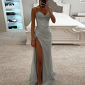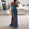 Step into the spotlight with the Julie Elegant High Slit Backless Dress, a stunning blend of sophistication and allure. Crafted from luxurious polyester, this backless long party dress features spaghetti straps and a dramatic high slit that enhances your silhouette, making it the perfect choice for glamorous evenings.