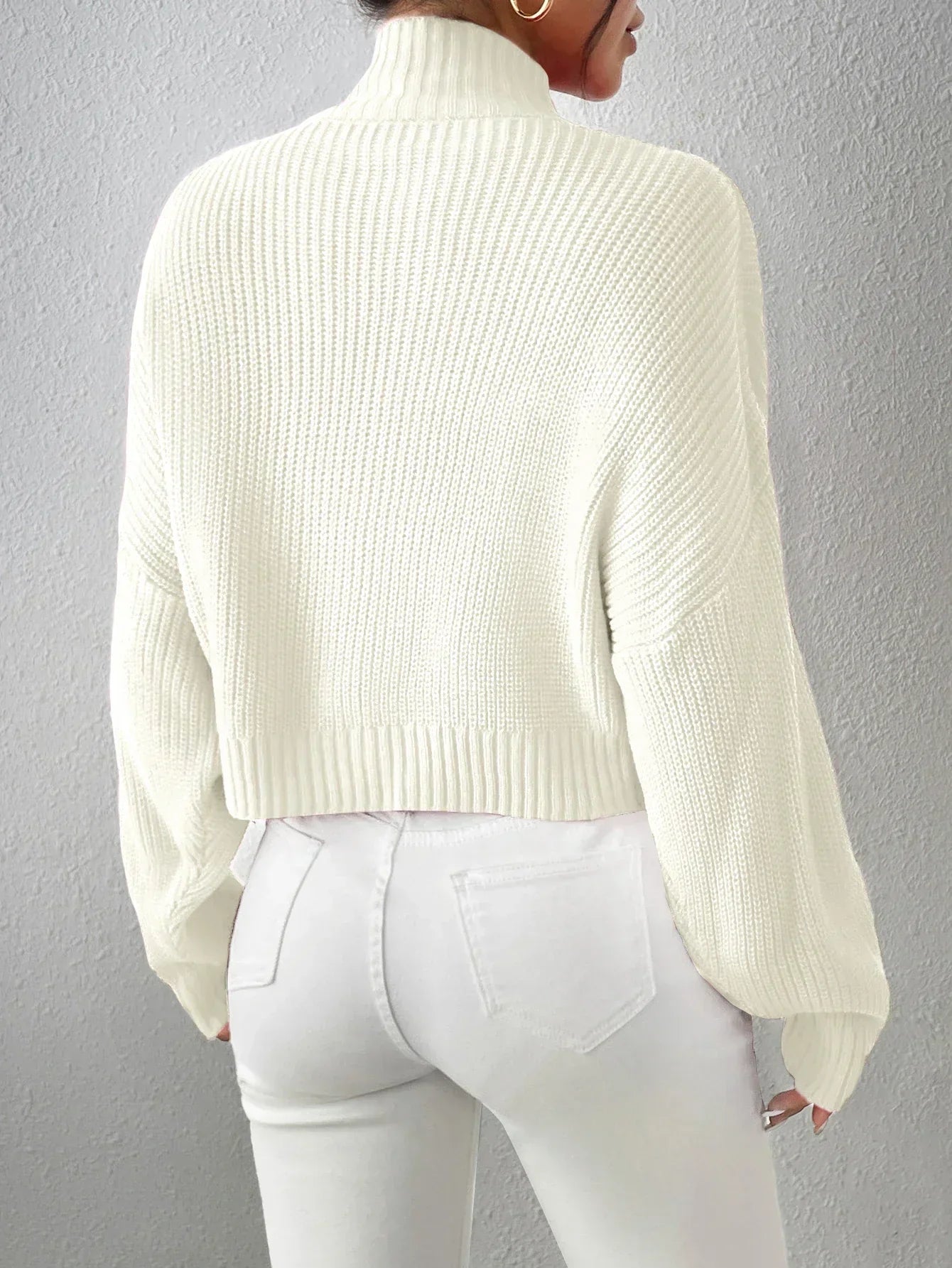Ribbed Knit Texture: The ribbed knit texture adds depth and visual interest to the sweater, while enhancing its cozy appeal.