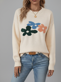 A perfect blend of feminine charm and cozy comfort. This sweater features a beautiful floral pattern that adds a touch of elegance to any outfit, making it an ideal choice for both casual and semi-formal occasions.