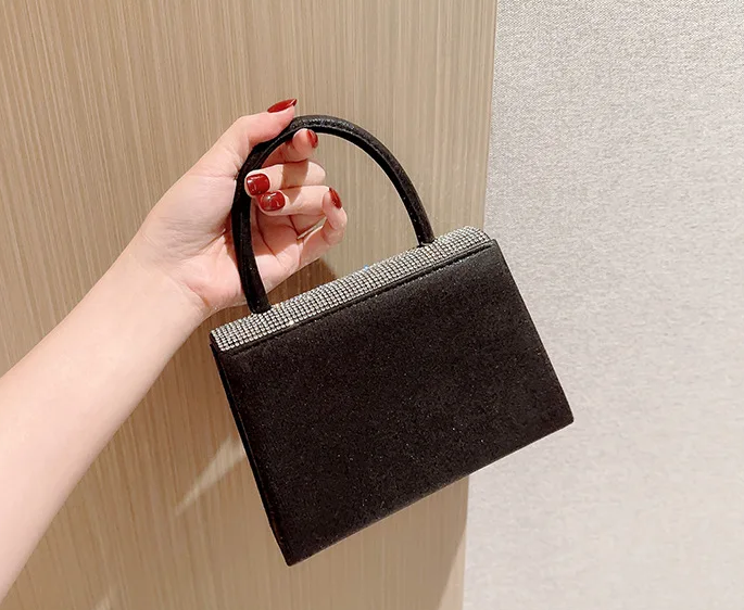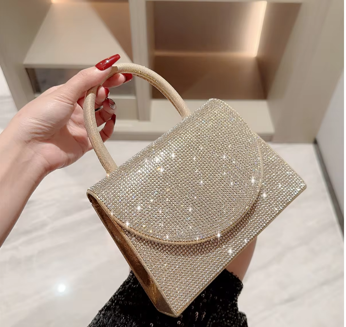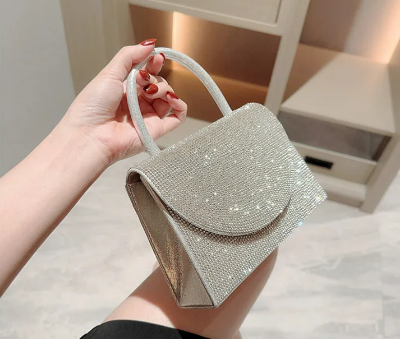 Sparkling Rhinestones: The handbag is embellished with dazzling rhinestones, adding a glamorous touch that catches the light beautifully.