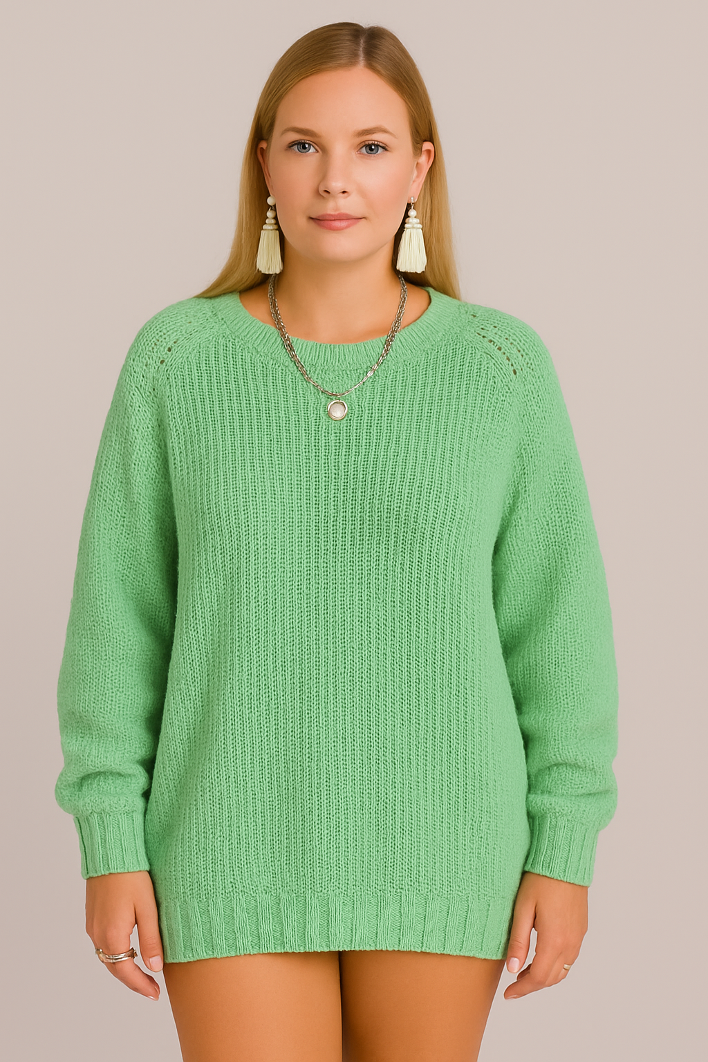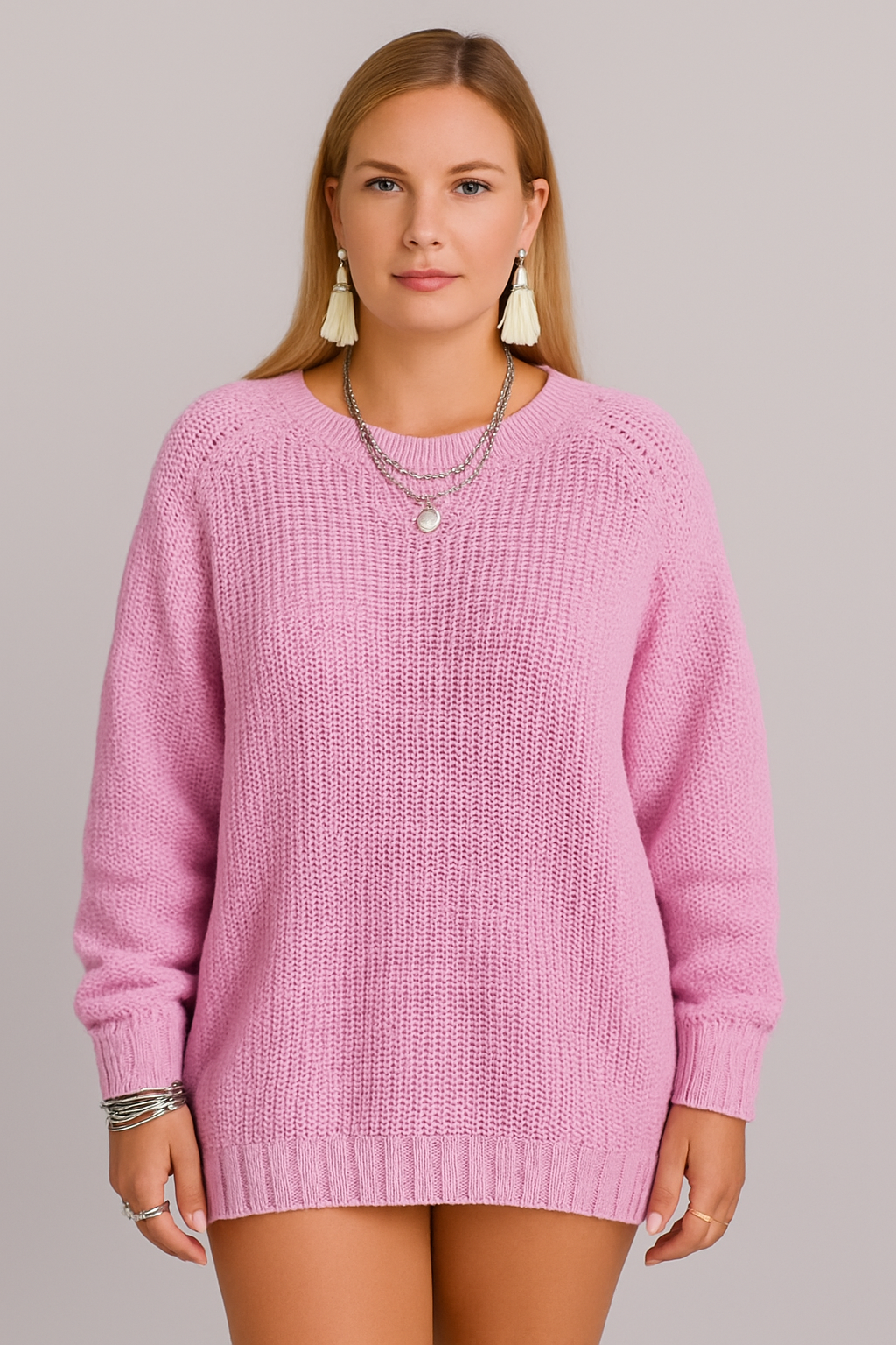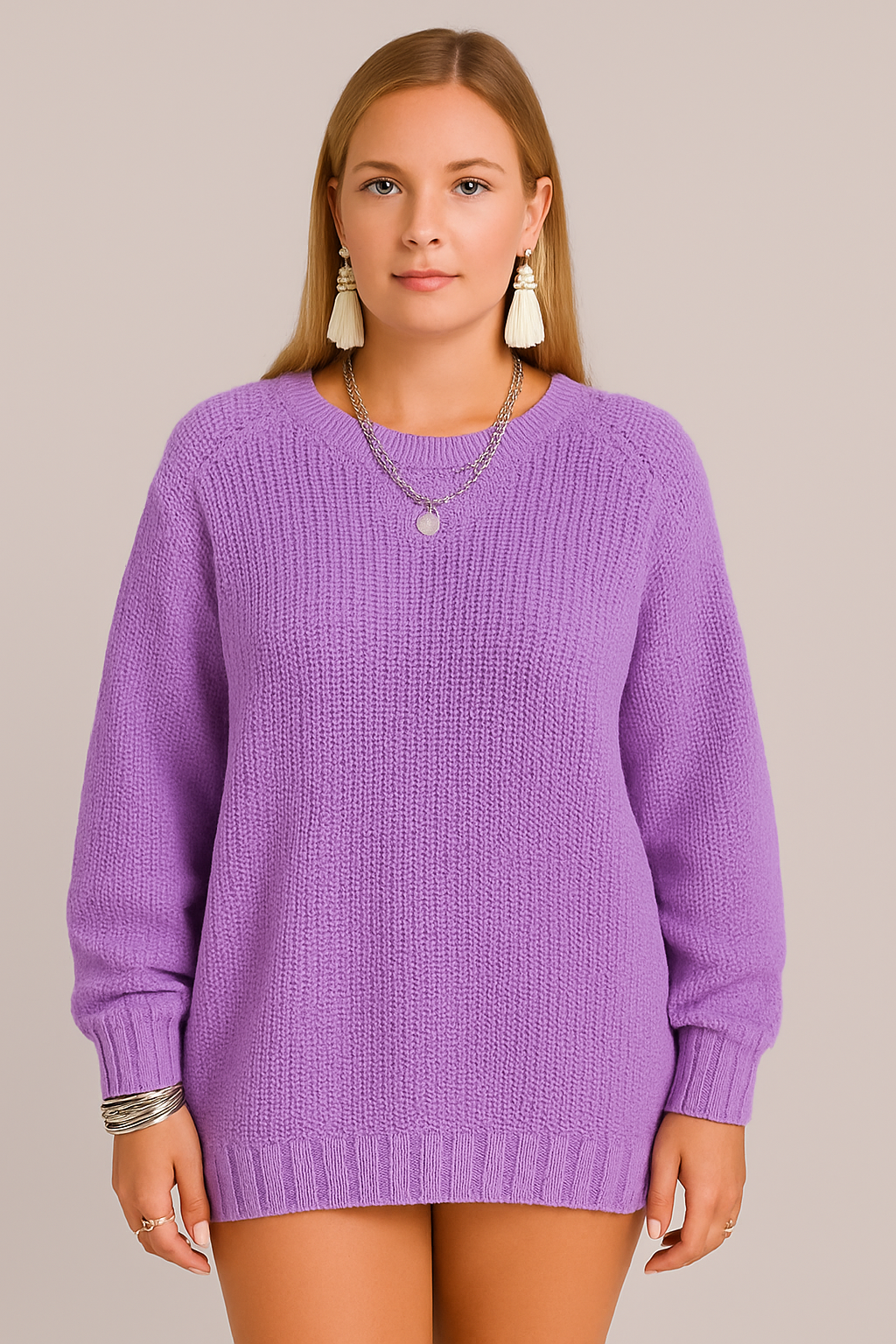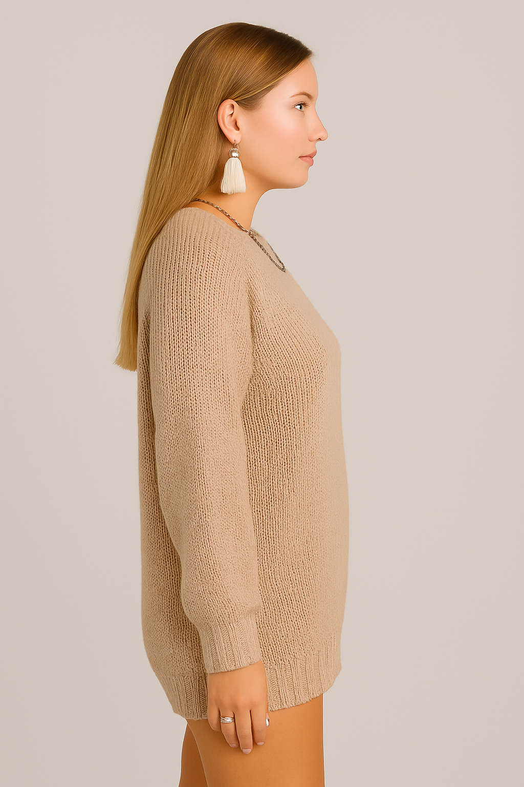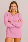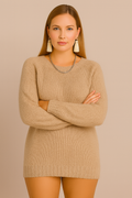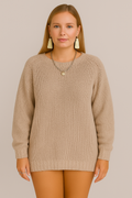 A cozy knitted piece that blends comfort and style effortlessly. Perfect for layering or wearing on its own, this pullover is designed for those who love a relaxed yet chic look.