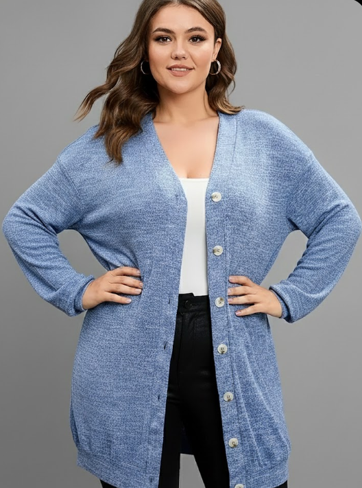 Flattering Fit: The Khloe Plus Size Cardigan features a relaxed yet tailored design that drapes beautifully over any outfit, providing a flattering silhouette that enhances your natural shape.