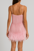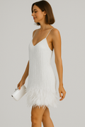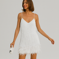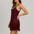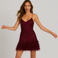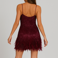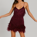 Turn heads and dazzle the crowd in the Kiara Sequin Feather Mini Dress, the ultimate choice for those who love to shine in style.