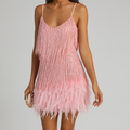 This is our Kiara Sequin Feather Mini Dress