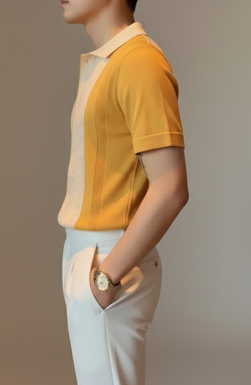 Classic Polo Details: Features a traditional polo collar and a three-button placket, adding a touch of classic sophistication.