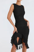 A perfect blend of charm and elegance. This dress features delicate ruffles that add a playful touch to its sophisticated design, making it an ideal choice for any special occasion or a chic day out.