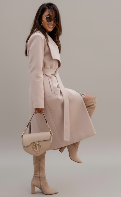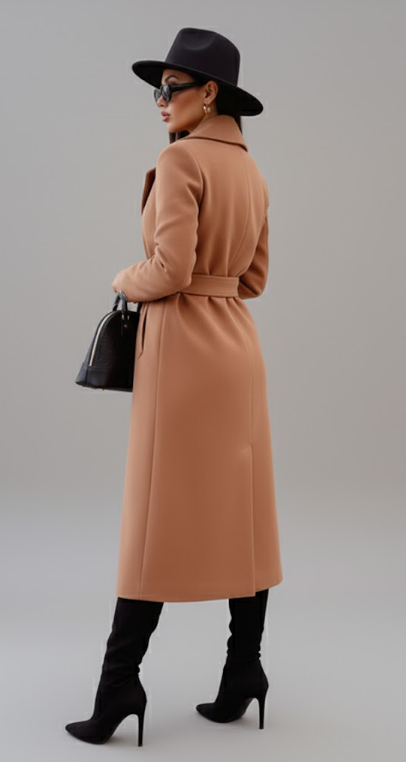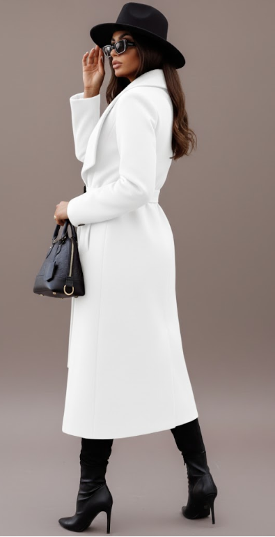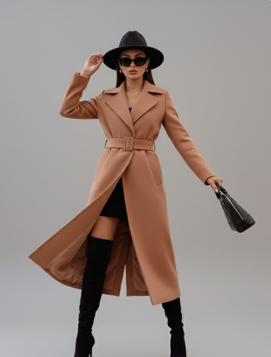 Pair the Laine Elegant Coat with a turtleneck and skinny jeans for a chic daytime look, or layer over a fitted dress with heeled boots for an elegant evening ensemble. The adjustable belt lets you style it open or cinched, giving you versatile options to suit any outfit.