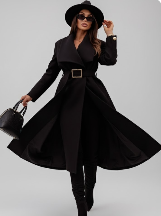The Laine Elegant Coat combines sophistication and style, making it a standout piece for cooler weather. Crafted from high-quality polyester, this coat is designed to be both durable and soft to the touch, offering warmth and comfort with an effortlessly chic appeal. Featuring an adjustable waist belt with a sleek buckle, this coat cinches at the waist to enhance your figure and add a tailored finish.