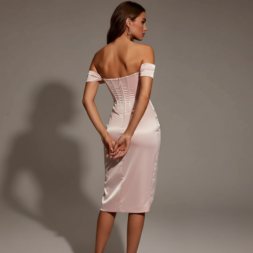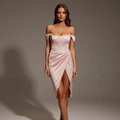 The epitome of sophistication and grace, designed to make you shine at any special occasion. With its luxurious satin fabric and timeless silhouette, this dress is the perfect choice for making unforgettable memories.