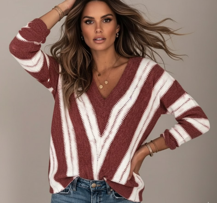 A chic and cozy addition to your cold-weather wardrobe. This sweater combines fashion and comfort with its stylish knitted design and soft fabric, perfect for staying warm while looking effortlessly stylish.