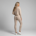 A chic and cozy outfit option that combines style and comfort effortlessly. Perfect for casual outings or lounging at home, this matching set is designed to keep you looking fashionable while feeling relaxed.