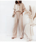 Linen Long Sleeve Shirt and Drawstring Trousers Set