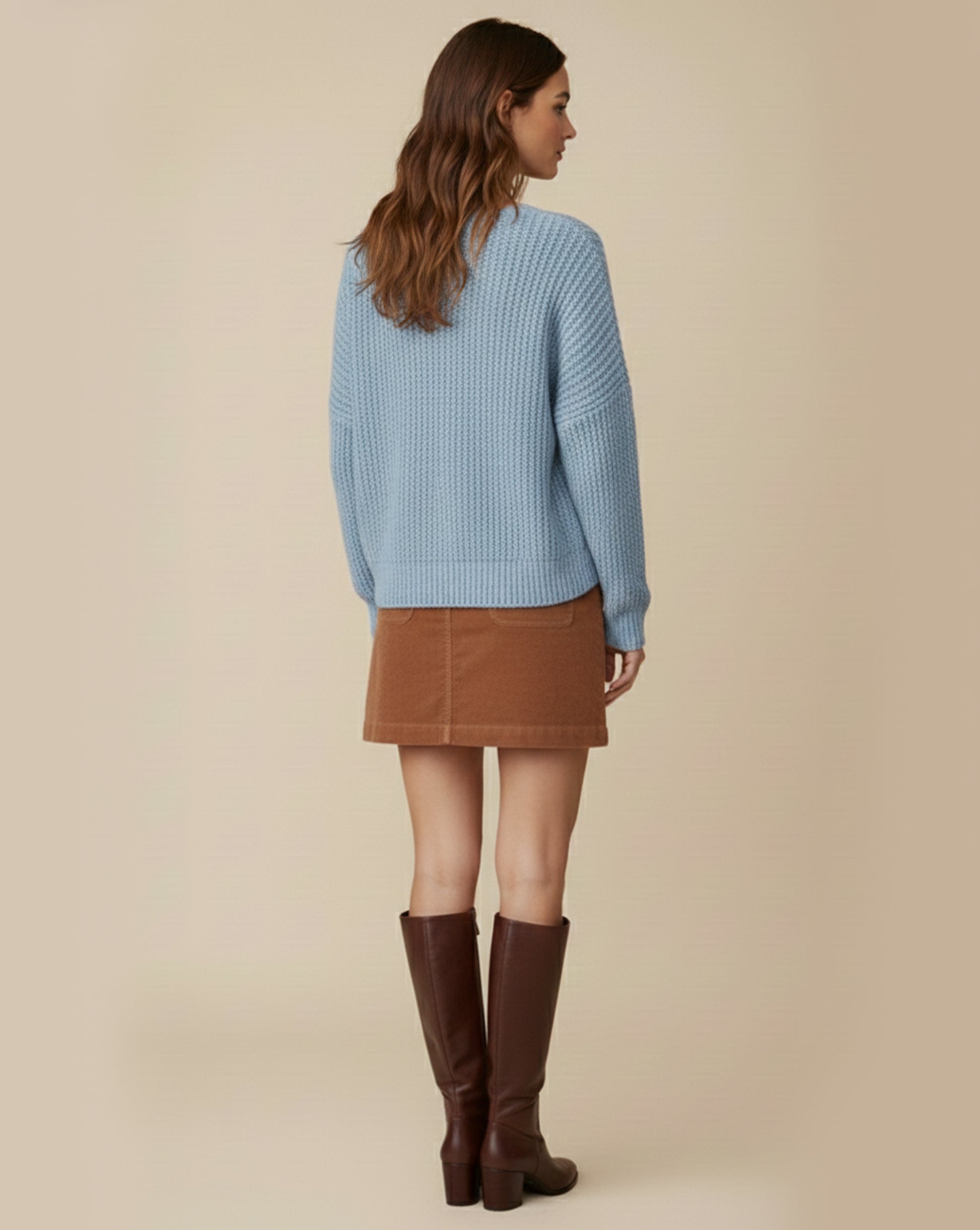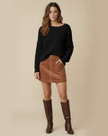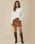 Waffle Knit Design: The Liz Cozy Sweater features a distinctive waffle-knit pattern that adds texture and a modern touch, perfect for creating a stylish and cozy look.