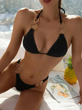 That brings a bold, stylish edge to your swimwear collection. Designed for fashion-forward beach lovers, this bikini features eye-catching ring details and a flattering halter neckline, perfect for lounging by the pool or soaking up the sun on a tropical getaway.