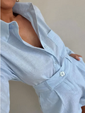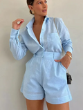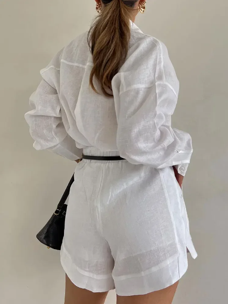 A crisp, coordinated two-piece that blends classic tailoring with warm-weather ease — this set features a structured button-up shirt and high-waisted shorts for a polished yet relaxed silhouette.