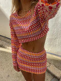 This is our Long Sleeve Crop Top and Mini Skirt Set