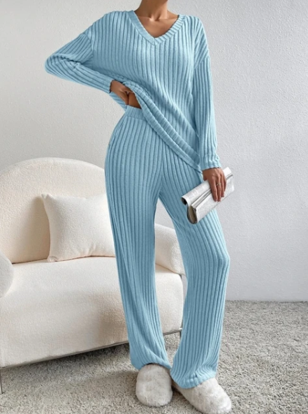 This is our Long Sleeve V-Neck Top and Relaxed Pants Set