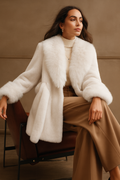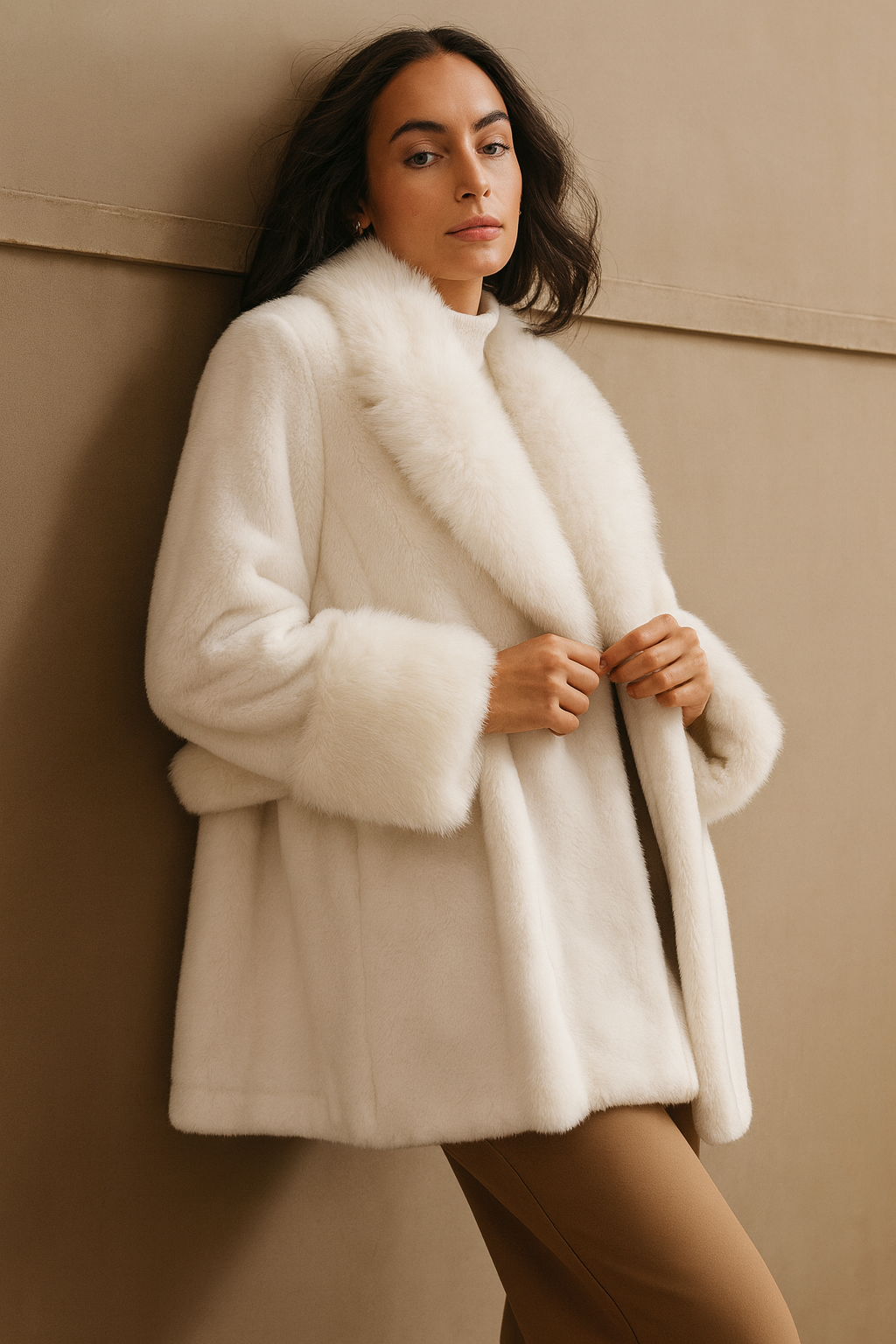 Stay effortlessly stylish and cozy with the Lucinda Fur Jacket—a timeless piece that enhances your winter fashion while ensuring you remain snug during chilly days.