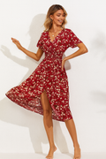 A stunning blend of floral elegance and feminine charm. Crafted from premium fabric, this dress features a vibrant floral pattern that exudes grace and sophistication, making it a perfect choice for both casual and formal occasions.