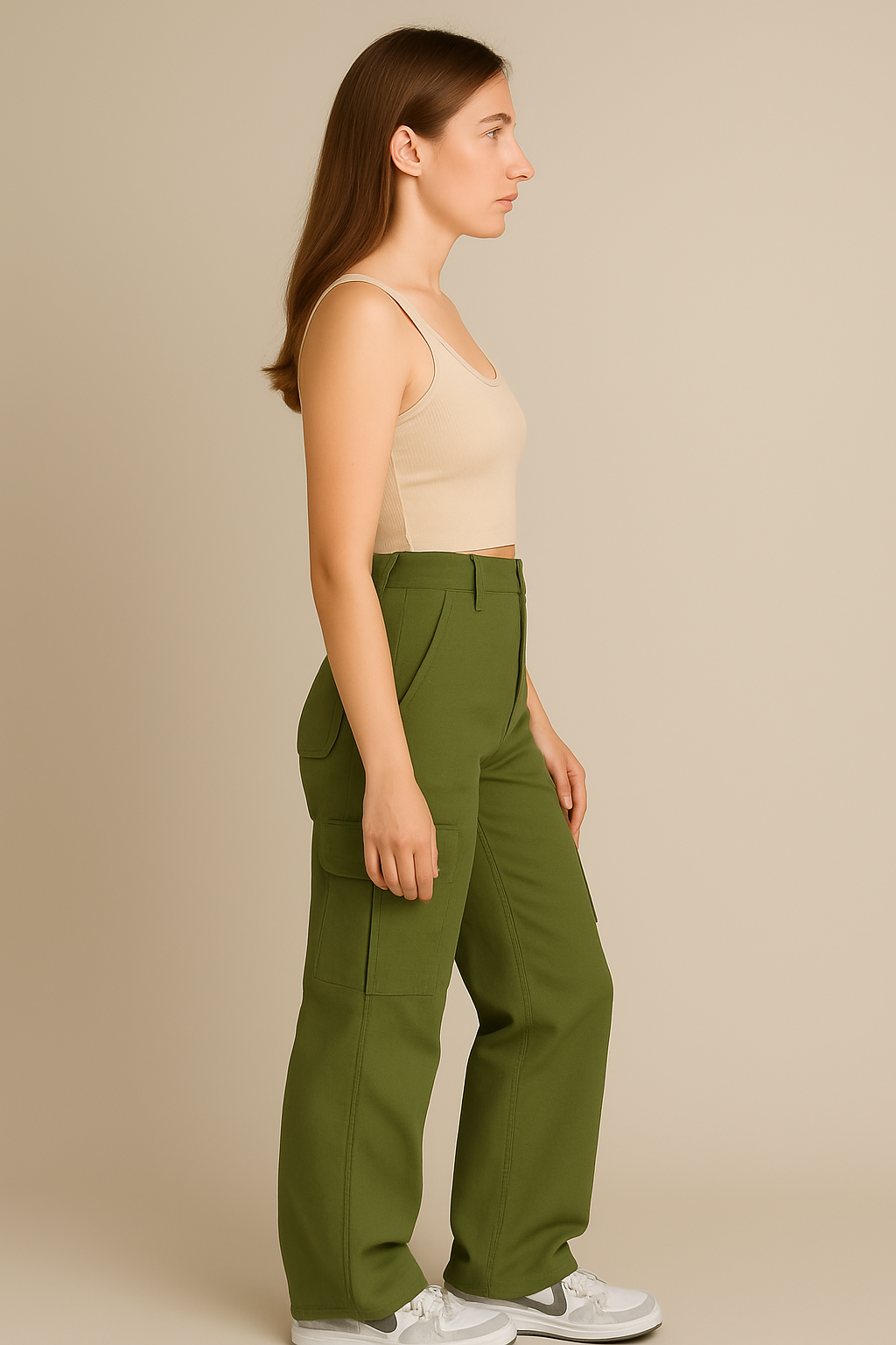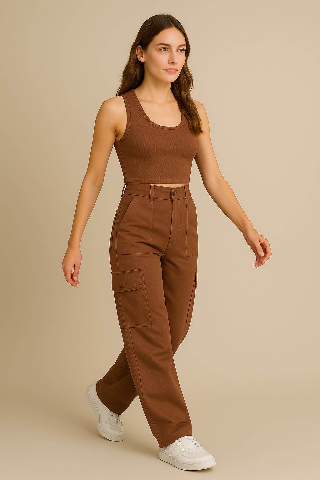 A stylish and versatile addition to your wardrobe designed for the modern woman who values both fashion and functionality. These cargo pants combine trendy design elements with practical features, ensuring comfort and style for everyday wear.