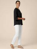 Half Sleeves: The stylish half sleeves with subtle ruffle detail add a touch of elegance while ensuring versatility for layering or standalone wear.