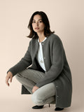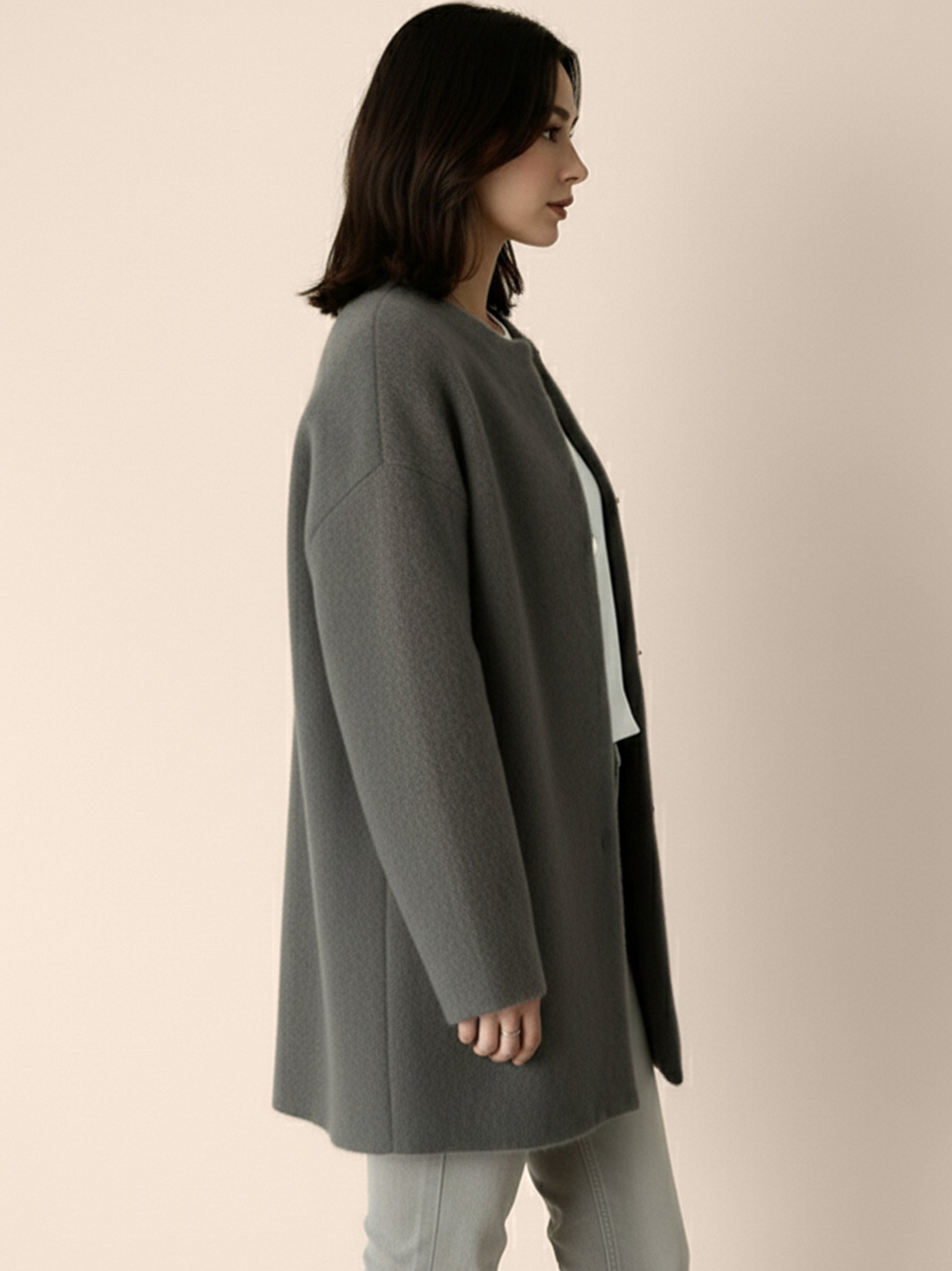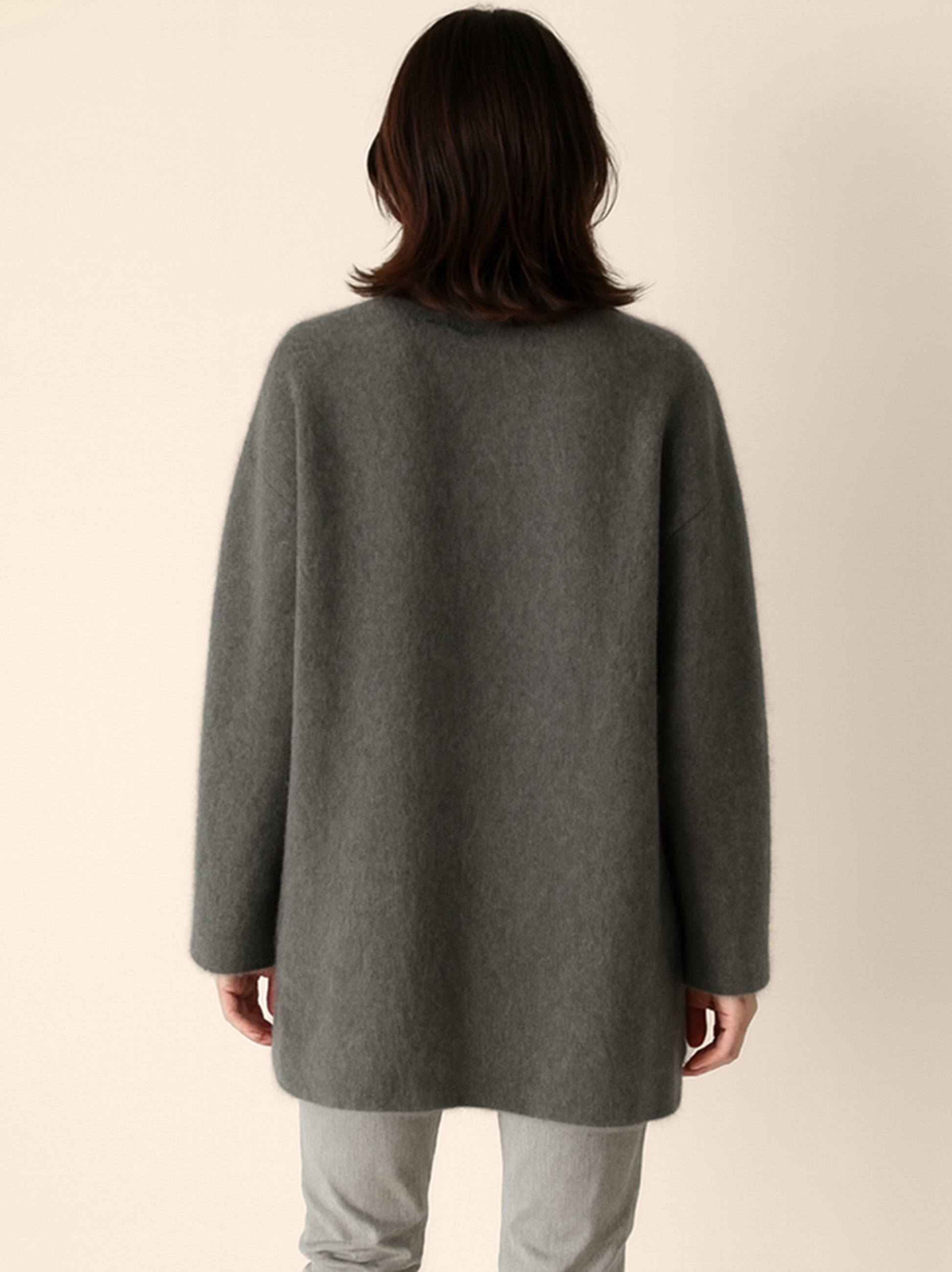 A soft, midweight knit cardigan with a clean open front and relaxed silhouette. Designed with ribbed trims, dropped shoulders, and mid-length coverage for versatile layering. A timeless essential made for effortless everyday styling.
