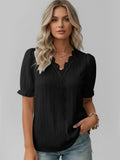 • Clean V-neckline and short sleeves offer a classic, flattering look