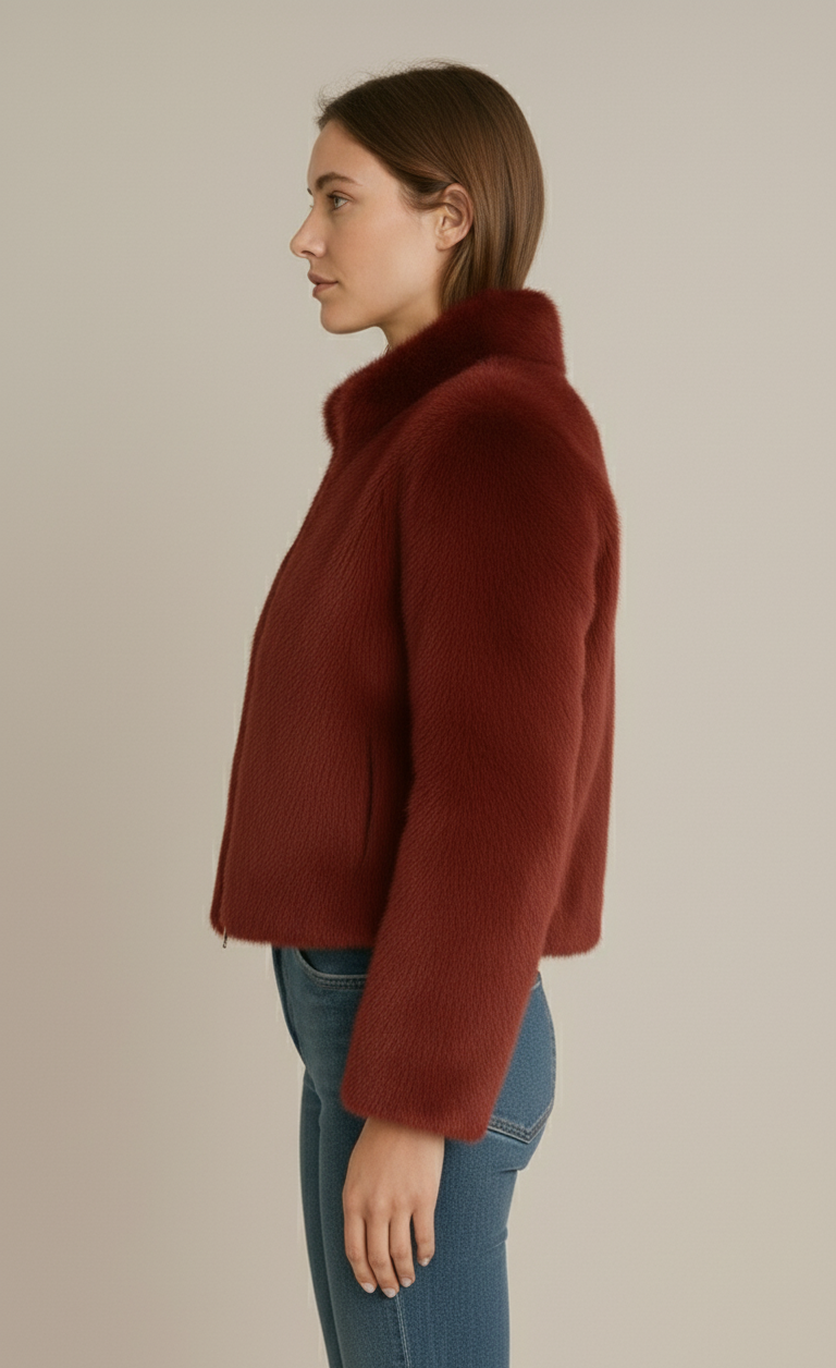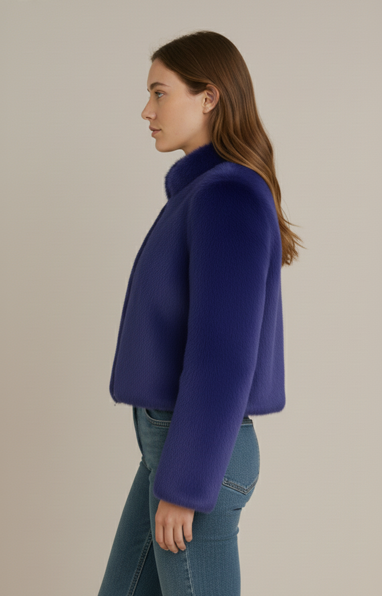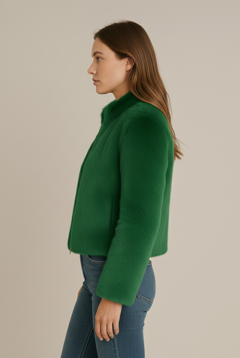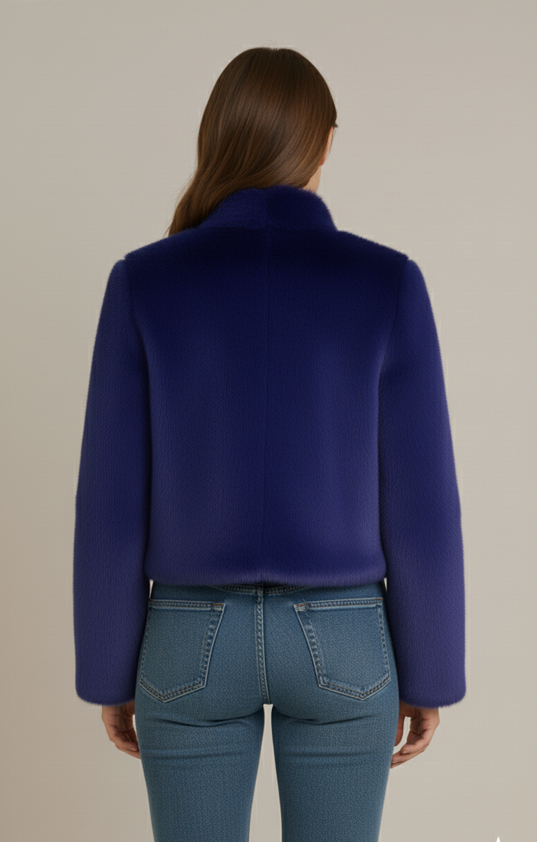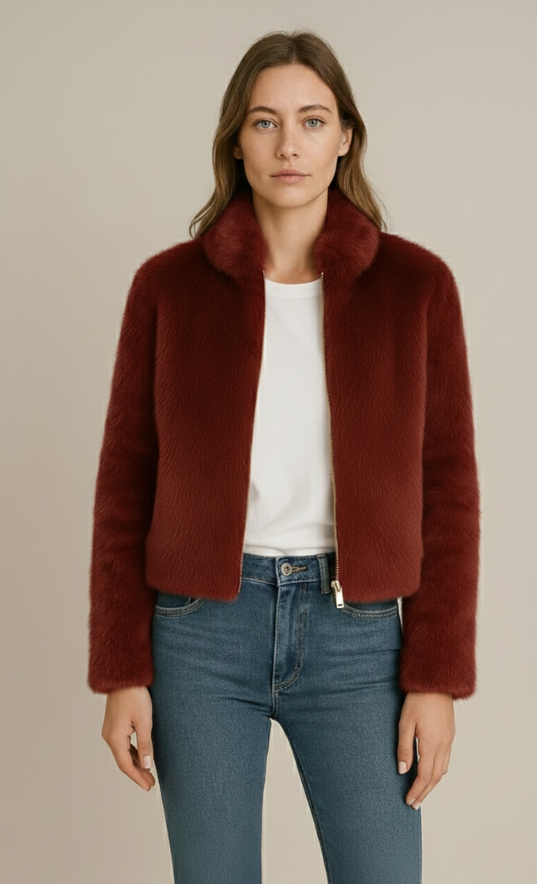 Surround yourself with elegance and warmth with the Nancy Elegant Faux Fur Jacket with high collar and zipper in faux fur. Designed with a stylish high collar and soft faux fur, this jacket gives an elegant look while keeping you warm. The full zip adds a modern touch and allows for adjustable coverage, making it perfect for layering over your favorite outfits.