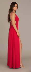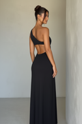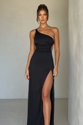 • Detail: One-shoulder cut, high side slit, fully lined for comfort