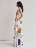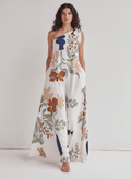 Detail: Printed one-shoulder neckline with tie-up accent and side pockets