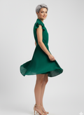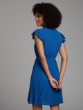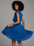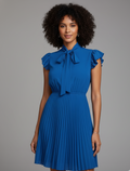 Chic, flirty, and irresistibly flowy — this mini dress brings feminine charm to every twirl with its pleated texture and graceful tie-neck detail.