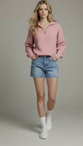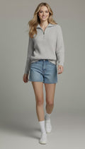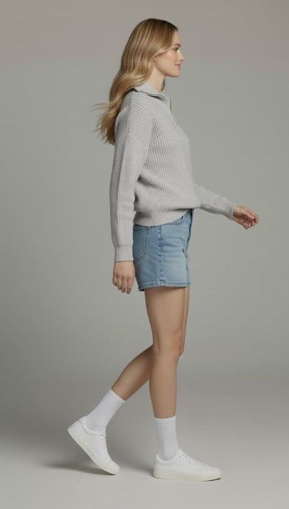 Sporty yet polished, this high-neck sweatshirt brings everyday comfort with an elevated twist — thanks to its structured collar and versatile quarter zip detail.