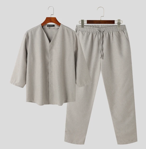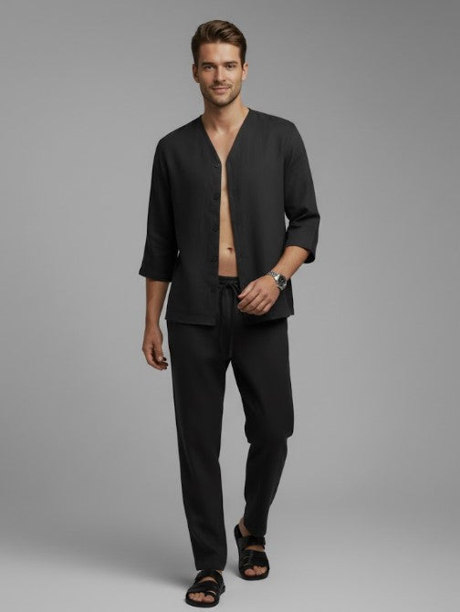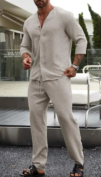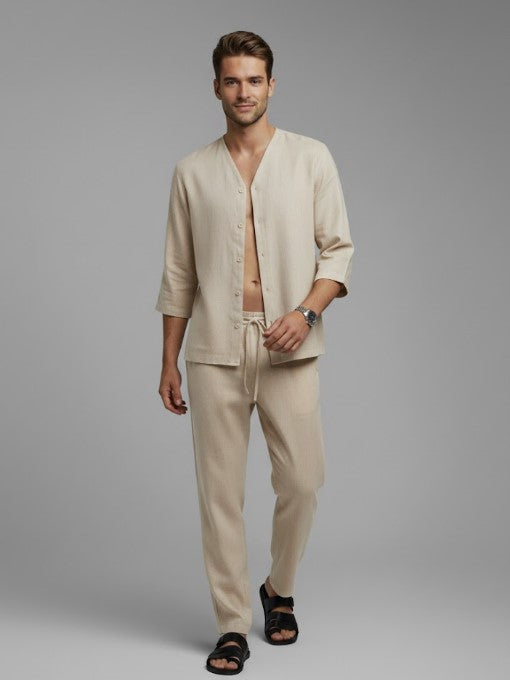 Discover ultimate comfort and simplicity. Perfectly crafted for everyday wear, this set includes a relaxed-fit shirt and matching pants, designed to provide effortless style and unparalleled comfort.
