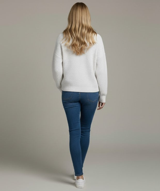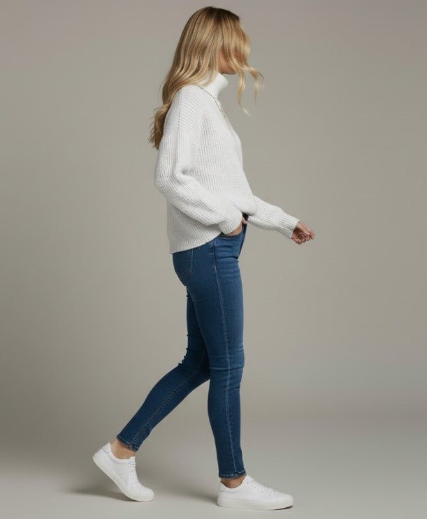 A plush knit sweater with a cozy turtleneck and softly oversized silhouette. Designed for warmth and ease, featuring ribbed trims and long sleeves with a natural drape. A cold-weather staple that layers effortlessly.