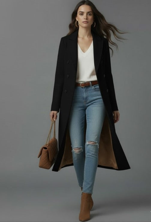 Double-Breasted Front: With a polished double-breasted button design, this coat adds a classic touch, ensuring both style and functionality.