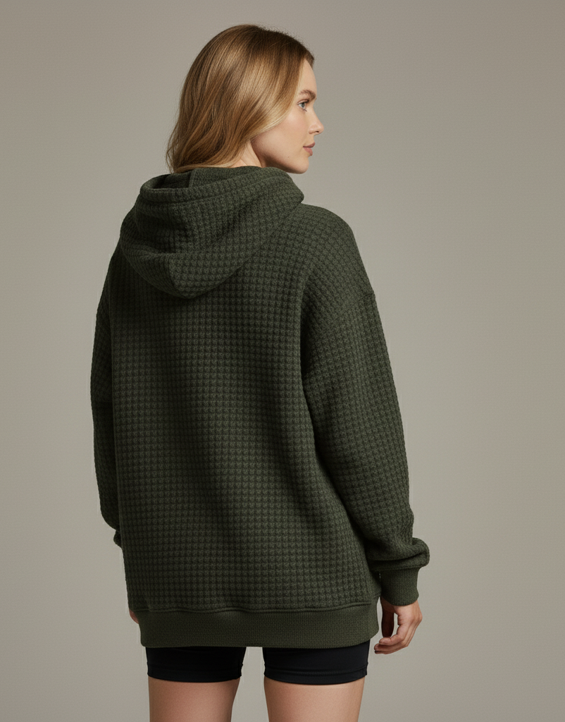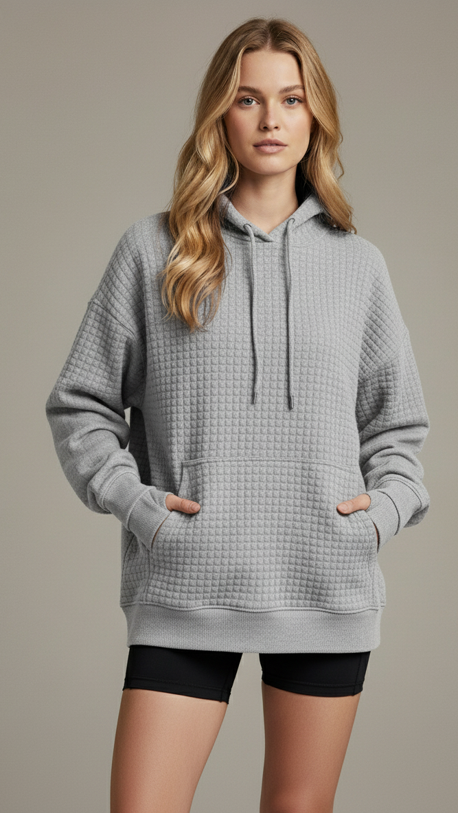 Elevate your casual style with the Riza Trendy Hoodie, the perfect blend of comfort and fashion for any occasion.