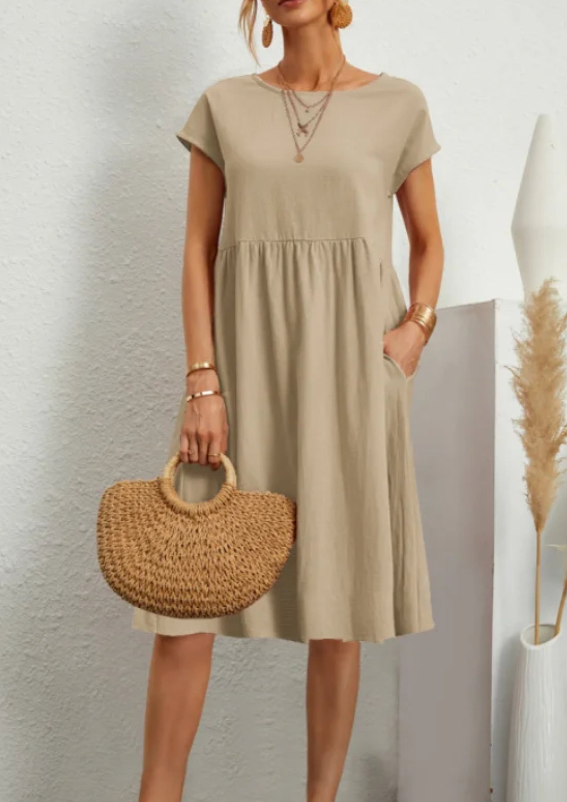 It's a versatile and comfortable addition to your wardrobe. Made from a soft and breathable cotton blend, this dress is perfect for everyday wear.