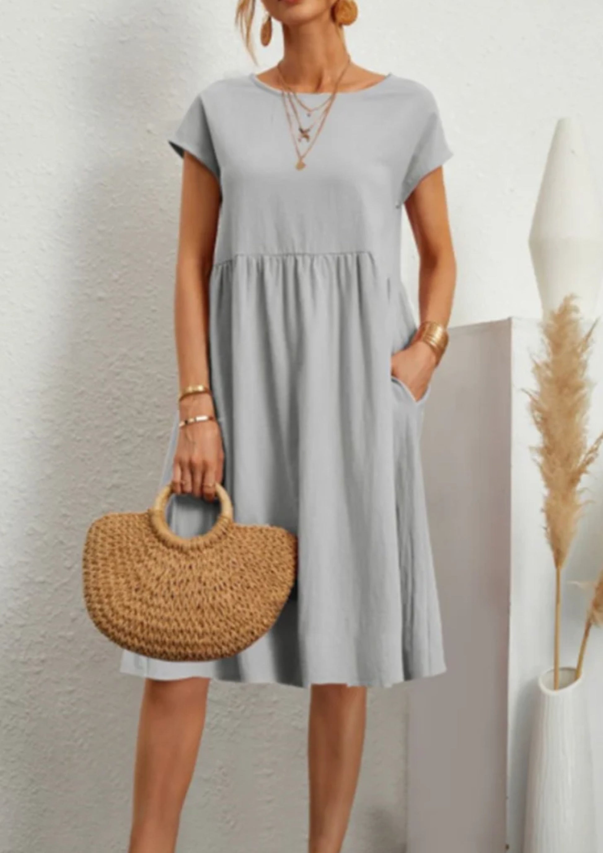 Add a touch of effortless style to your wardrobe with the Roxana Short Sleeve Dress. Whether you're dressing it up with heels or keeping it casual with sneakers, this dress is sure to become a go-to favourite!