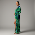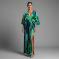 The Samantha Elegant Printed Dress combines sophistication and flair with its stunning design. Featuring a v-neckline and a chic side slit, this dress is perfect for making a statement at any event. Crafted from lightweight polyester, it offers both comfort and elegance.